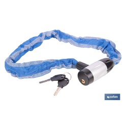 Candado de cadena de acero cementado | Cadena de Ø6 mm y longitud de 90 cm | Funda de nylon azul | Incluye 2 llaves de segurida