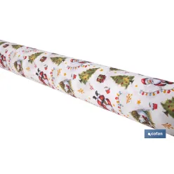 Rollo de mantel resinado antimanchas con Árboles de Navidad y regalos | Materiales: 75 % algodón y 25 % poliéster | Diseño navi