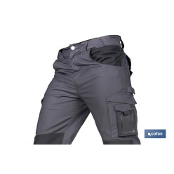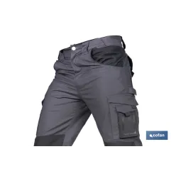 Pantalón de trabajo modelo Heimdall en gris oscuro y negro | Elástico, reforzado con múltiples bolsillos | Materiales: 65 % pol