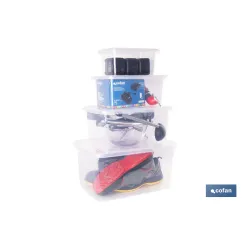 • PACK DE 4 CAJAS DE ALMACENAJE TRANSPARENTES 4 L + 8 L + 15 L + 26 L