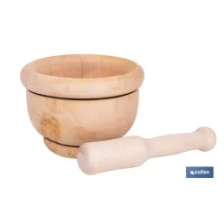 Mortero de madera de abedul con maza. Diámetro: Ø14 cm. Ideal para machacar alimentos