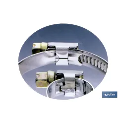 ABRAZADERAS METÁLICAS INOX A-2 - Contienen enganche de rosca incorporado, no contienen cantos ni rebabas. Fleje de acero inoxidable y tornillo de acero INOX.