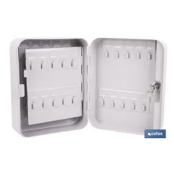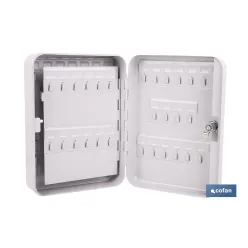 Este armario para llaves está diseñado para guardar, organizar y proteger llaves de forma cómoda y segura, siendo una solución perfecta para oficinas, comunidades de vecinos, hoteles, talleres, concesionarios, centros educativos, empresas de mantenimiento o, incluso, para uso doméstico. Fabricado en acero resistente, ofrece una estructura robusta y duradera que protege el contenido frente a accesos no autorizados. Incorpora cerradura con 2 llaves incluidas, garantizando un control seguro del acceso. El interior cuenta con colgadores metálicos distribuidos de forma ordenada y una pegatina con numeración, que permite identificar fácilmente cada llave y mantener una organización clara y eficiente. Está disponible en cuatro tamaños, con capacidad para 20, 40, 60 y 80 llaves, adaptándose a diferentes necesidades:· 20 llaves: 20 x 16 x 7,5 cm· 40 llaves: 20 x 16 x 7,5 cm· 60 llaves: 25 x 18 x 7,5 cm· 80 llaves: 30 x 24 x 7,5 cmIncluye tornillos y tacos de fijación, lo que permite instalarlo en paredes, puertas o muros, quedando siempre visible y accesible. Su diseño compacto y funcional facilita el uso diario sin ocupar espacio innecesario.
