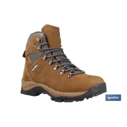 Bota de montaña para hacer trekking modelo Tibet. Bota polivalente apta para rutas largas y caminos tanto rehabilitados como abruptos. Esta bota está confeccionada en piel nobuck hidrofugado, transpirable y de fácil limpieza. La suela está fabricada en phylon de doble densidad y caucho, unos materiales que aportan una gran ligereza y amortiguación, además de un gran agarre y una resistencia a la abrasión. Incluye un contrafuerte en la zona del talón para dar mayor sujeción y estabilidad.Disponible desde la talla 37 hasta la 47.