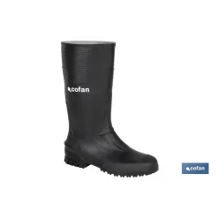 Botas de agua altas de PVC de color negro diseñadas para ofrecer una protección superior y adaptabilidad en cualquier entorno de trabajo. Estas botas están fabricadas con material de PVC de alta calidad, lo que garantiza su durabilidad y resistencia al desgaste. Cuentan con protección reforzada en las áreas más críticas como el talón, el tobillo, el empeine y la puntera, brindando una seguridad adicional contra impactos y abrasiones. Una característica destacada de estas botas es su capacidad de ajuste. Pueden acortarse en una zona específica para adaptarse mejor a las necesidades y preferencias individuales, ya sea para un uso prolongado en el campo, la construcción o cualquier otra actividad que requiera una protección confiable contra el agua y la suciedad. Además, estas botas cuentan con una espuela trasera que facilita el descalzado sin riesgo de desgarrar el material, prolongando así la vida útil del producto. Su perfil frontal está especialmente diseñado para reducir la acumulación de suciedad y permitir una limpieza más fácil, manteniendo las botas en óptimas condiciones con menos esfuerzo. Ideales para profesionales que requieren un calzado robusto y adaptable, estas botas de agua altas de PVC negras son la elección perfecta para quienes buscan combinar protección, comodidad y funcionalidad. Disponibles desde la talla 36 hasta la 48.