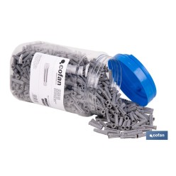 Bote de tacos de fijación de 4 segmentos que ofrecen una fijación firme, segura y polivalente en una gran variedad de materiales base. Fabricados en nylon, estos taco garantizan una expansión óptima y un anclaje fiable incluso en condiciones exigentes, siendo ideal para trabajos profesionales, mantenimiento, instalación y bricolaje doméstico. Su diseño incorpora cuatro segmentos de expansión, lo que mejora la distribución de la carga y asegura una sujeción más estable. Gracias a su collarín y al sistema Anti-Spin, los tacos evitan el giro dentro del taladro durante la instalación, permitiendo un montaje más rápido, cómodo y preciso. El anclaje multimaterial puede aplicarse tanto en soportes macizos (hormigón, piedra, ladrillo macizo, adobe, hormigón celular, etc.) como para soportes huecos (ladrillo hueco, bloque hueco, placa de yeso laminado, placas alveolares, etc.). Además, son compatibles con una amplia gama de fijaciones, como tornillos aglomerados, tornillos avellanados, barraqueros, alcayatas y hembrillas, lo que los convierten en unos complementos muy versátil para infinidad de aplicaciones: instalación de accesorios, fijación de soportes, montaje de elementos decorativos o estructurales, etc.Estos tacos de nylon están disponibles en diferentes tamaños, cada uno suministrado en diferentes cantidades:· 6 x 30 (Ø6 mm), suministrado en botes de 1000 unidades.· 8 x 40 (Ø8 mm), suministrado en botes de 500 unidades.· 10 x 50 (Ø10 mm), suministrado en botes de 300 unidades.Estos formatos permiten abastece tanto a profesionales como a ferreterías, así como a instaladores y empresas de mantenimiento que necesitan disponer de grandes cantidades de forma diaria.