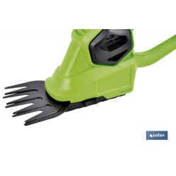 67,32 € -40% 40,39 €Voltios: 3,6V - 1,5 Ah | R.P.M: 1000 rpm | Batería: Litio Li-ion | Diámetro Max corte: ø 7.5 mm | Ancho corte setos: 110 mm | Ancho corte césped: 70 mm | Incluye: Cargador cable -