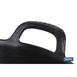 Capazo con dos asas con capacidad para 42 litros. Fabricado en polietileno es perfecto para realizar trabajos en distinto ámbitos, tanto agrícolas como de construcción y también para el hogar. Resistente y duradero. Disponible en varios colores: negro, amarillo verdoso, azul claro, violeta, rojo y beige. Las medidas son 48,5 x 45 x 38 cm. Es muy ligero y resistente. Tiene una base plana muy estable.