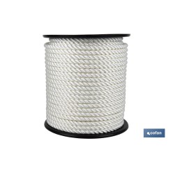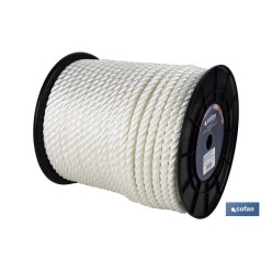 Cabo de amarre de 3 cabos. Este cabo de amarre está fabricado 100 % de multifilamentos de poliéster de alta tenacidad preestirado. El diseño de cuerda torcida se compone de tres cordones torcidos antideslizantes y fáciles de engarzar. El cabo de amarre de 3 cabos cuenta con una gran capacidad de absorción de impactos y tirones. Recomendamos su uso para el amarre de embarcaciones en el muelle o boya. Disponible en varios grosores y 3 colores: blanco, negro y azul navy.