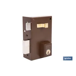 Cerradura de sobreponer de izquierda adaptable al modelo 56A, una solución robusta para reforzar la seguridad de puertas exteriores e interiores. Diseñada con una palanca de acero y un mecanismo interior de latón, esta cerradura garantiza una larga durabilidad y resistencia al uso intensivo. Incorpora un cilindro redondo de Ø25 mm de diámetro y 50 mm de longitud. Además, incluye 3 llaves y presenta un sistema de cierre de una vuelta para mayor comodidad. Fabricada con un acabado en hierro esmaltado de color marrón, convirtiéndola en una cerradura resistente a la corrosión. Incluye un cerradero, un embellecedor y tornillos para su instalación. Perfecta para su instalación en puertas con apertura a mano izquierda. Esta cerradura está disponible en dos anchuras diferentes (60 o 70 mm) para permitir su adaptación a diferentes tipos de puertas. Las medidas del cerradero, en ambas, son de 4 x 3 x 11,2 cm.