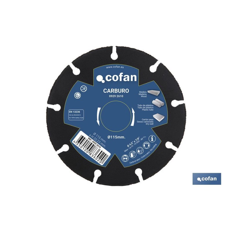 El disco de carburo permite cortar de manera fácil y segura materiales blandos. Alta velocidad de corte gracias al fino espesor 1 mm con grano de carburo fundido por láser. Para corte de madera, madera con clavos, plástico, cartón-yeso y tubo de cobre. Normativas EN 13236 Eu: FEPA Safety Code.