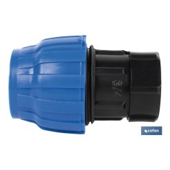 Enlace recto con rosca hembra BSP para tuberías de polietileno (PE).Adecuado para trabajar en sistemas de conducción de agua con una presión nominal de 16 bares. Este enlace está fabricado en polipropileno de alta calidad y durabilidad con un acabado de color negro y una tuerca de color azul. Dispone de junta de estanqueidad de EPDM que garantiza un ajuste fuerte, duradero y sin fugas.Disponible con diferentes medidas. Pueden comprarse en pack o de forma unitaria.