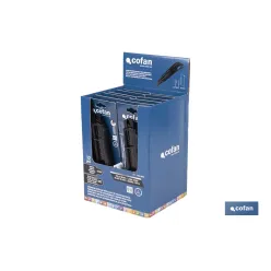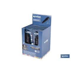 Los expositores de cúteres antideslizantes Cofan es la solución perfecta para cualquier ferretería o tienda de suministros industriales que busca ofrecer a sus clientes herramientas de corte de alta calidad y rendimiento. Estos expositores fabricados en cartón incluyen 12 cúteres diseñados para afrontar las tareas más exigentes. Cada cúter cuenta con un resistente cuerpo de ABS de alta calidad y un recubrimiento de TPR antideslizante que garantiza un agarre firme y cómodo en todo momento. Su cuchilla negra de acero SK2 con un grado de dureza de 65HRC proporciona cortes precisos y limpios incluso en materiales resistentes. El sistema de bloqueo automático evita deslizamientos accidentales de la hoja, ofreciendo así una mayor seguridad durante el uso. Además, su mecanismo de cambio rápido de cuchillas te permitirá ahorrar tiempo y aumentar la productividad en cada proyecto. Los cúteres están disponibles en tres medidas diferentes (14,5 x 2 cm, 16 x 4 cm y 19 x 4,5 cm) con anchos de hoja de 9 mm, 18 mm y 25 mm, y un grosor de 0,6 o 0,7 mm, y se presentan en tres modelos de expositores diferentes: 04600926, con unas medidas de 14,7 x 13,2 x 22 cm y un peso de 790 g, 04500927 con unas medidas de 17,3 x 17,3 x 22,6 cm y un peso de 1701 g, y 04500928 , con unas medidas de 19,6 x 17 x 27 cm y un peso de 2706 g, para que puedas ofrecer a tus clientes una herramienta profesional segura y duradera.