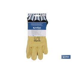 Guantes de piel vacuno amarillo UNE-EN 20388 de calidad estándar. Tienen el pulgar plano y un ribeteado en la muñeca. Son cómodos y duraderos. Estos guantes se caracterizan por asegurar el cuidado de las manos y protegerlas de procesos donde puedan sufrir daños y lesiones. Son cómodos de usar y fáciles de poner y quitar. Pueden utilizarse en múltiples tareas como, por ejemplo, jardinería, manipulación de materiales, agricultura, construcción, ganadería, bricolaje, etc. Son duraderos y resistentes, por lo que garantizan una larga vida útil del producto. Permiten trabajar de manera segura para proteger las manos mientras se elaboran las tareas de manera eficiente.