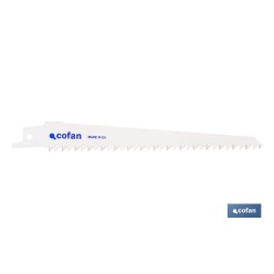 Las hojas de sierra de sable están diseñadas para ofrecer un corte limpio, rápido y preciso en diferentes tipos de madera y materiales blandos. Fabricadas en acero al carbono (HCS), proporcionan una excelente resistencia al desgaste, durabilidad y flexibilidad, garantizando una larga vida útil incluso en trabajos exigentes. Estas hojas son universales, totalmente compatibles con la mayoría de sierras de sable del mercado, incluyendo las sierras de sable Cofan tanto en versión a batería (ref. 50003266) como eléctrica (ref. 5000127), además de ser adaptables a Bosch y otras marcas con el mismo sistema de anclaje. Cuentan con un dentado triscado, que mejora la evacuación del serrín, reduce el calentamiento y prolonga la vida útil de las hojas. Con un paso de 6 dientes TPI, las hojas están disponibles en dos longitudes diferentes para adaptarse a diferentes aplicaciones y necesidades de corte: 280 mm (ref. 20511001), equivalente a Bosch S1344D, y 130 mm (ref. 20511002), equivalente a Bosch S644D. Estas están especialmente diseñadas para el corte de madera seca, tabiques de madera, planchas de aglomerado, MDF, madera terciada, así como plásticos como el PVC, ABS, PP, etc. Ideales para cortes rápidos y rectos en materiales con un espesor de más de 12 mm. Su diseño de anclaje universal las hace compatible con la mayoría de sierras de sable del mercado, garantizando un ajuste seguro y un rendimiento óptimo en cada uso. Estas hojas de sierra se suministran en packs de 5 unidades.