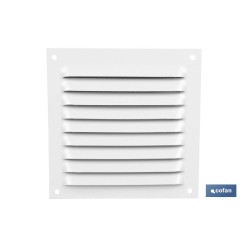 Rejilla de ventilación con mosquitera que permite la admisión o extracción del aire entre una estancia y el exterior. Fabricada en aluminio con 0,6 milímetros de espesor lacado en color blanco.Incluye mosquitera para evitar que cualquier insecto penetre a través de la rejilla y acceda al interior de la estancia.Disponibles en varias medidas (10 x 10 15 x 15 17 x 17 20 x 20 25 x 25 y 30 x30 centímetros).Disponibilidad con paso de aire desde 25 centímetros cuadrados, en el modelo más pequeño, hasta 240 en el modelo de mayores dimensiones.
