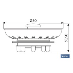 Rejilla filtro fabricada en acero inoxidable de gran calidad. Diámetro 80 milímetros. Compatible con fregaderos TEKA y la mayoría de fregaderos estándar. Se encuentran disponibles versiones con pasador metálico o de polietileno, y tipo araña.