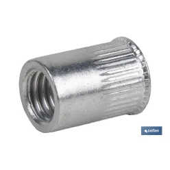 TUERCAS REMACHABLES CILÍNDRICAS RANURADAS FONDO ABIERTO CABEZA REDUCIDA ALUMINIO M4 X 10 (PACK: 1000 UDS)